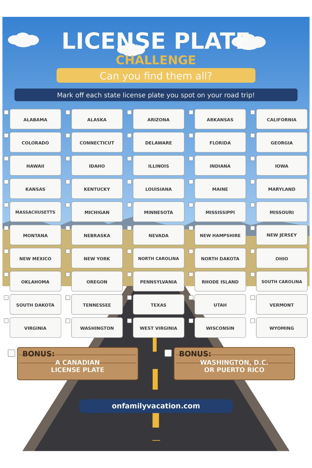Printable bingo cards or scavenger hunts turn the drive into a fun challenge and keep kids looking out the window.